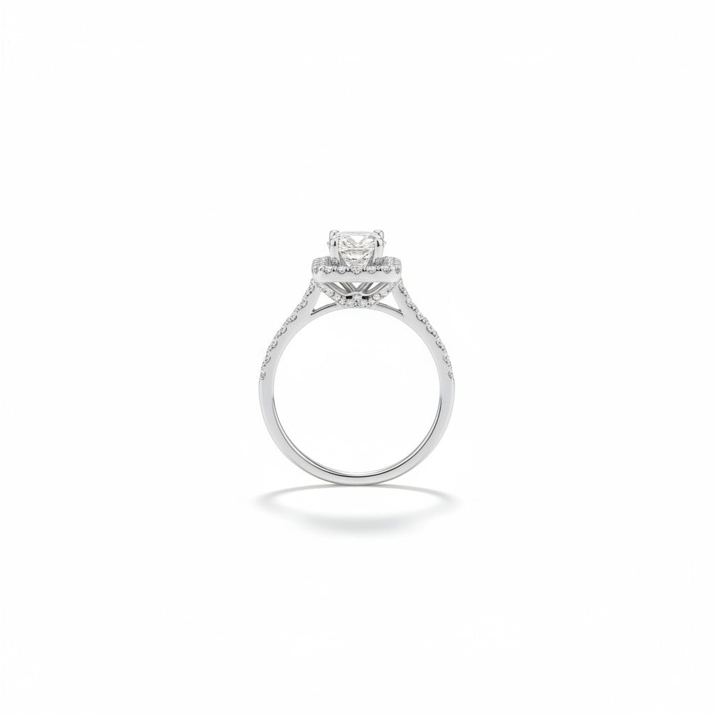 The Brilliance: A celebration of pure, natural light. This ring centers a 1.25-carat Natural Earth Diamond, hand-selected for its lively "fire" and brilliance. By choosing a stone in the I-J color range, the diamond possesses a warm, bright-white face that radiates beautifully against the cool tones of the setting.