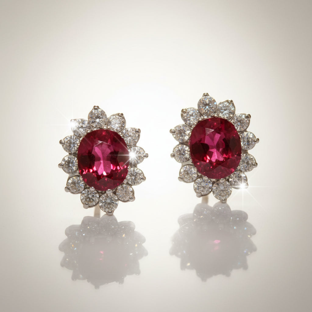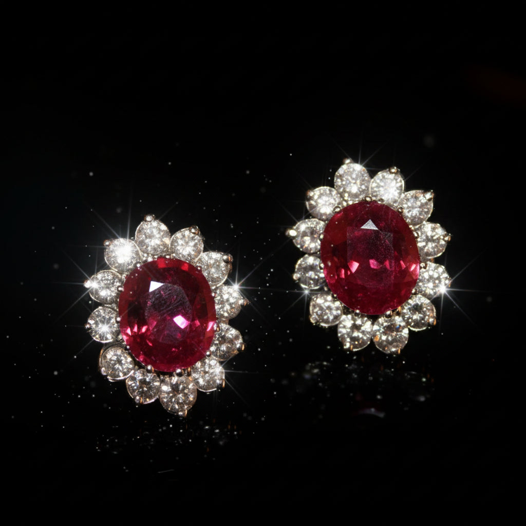 The Presence: Unapologetic luxury. These earrings feature a monumental 7.00 carats of natural rubies, matched with exacting precision for their deep, regal saturation. In the world of gemstones, finding a single 3.50-carat ruby with this level of clarity is rare; finding a perfectly balanced pair is a generational feat.